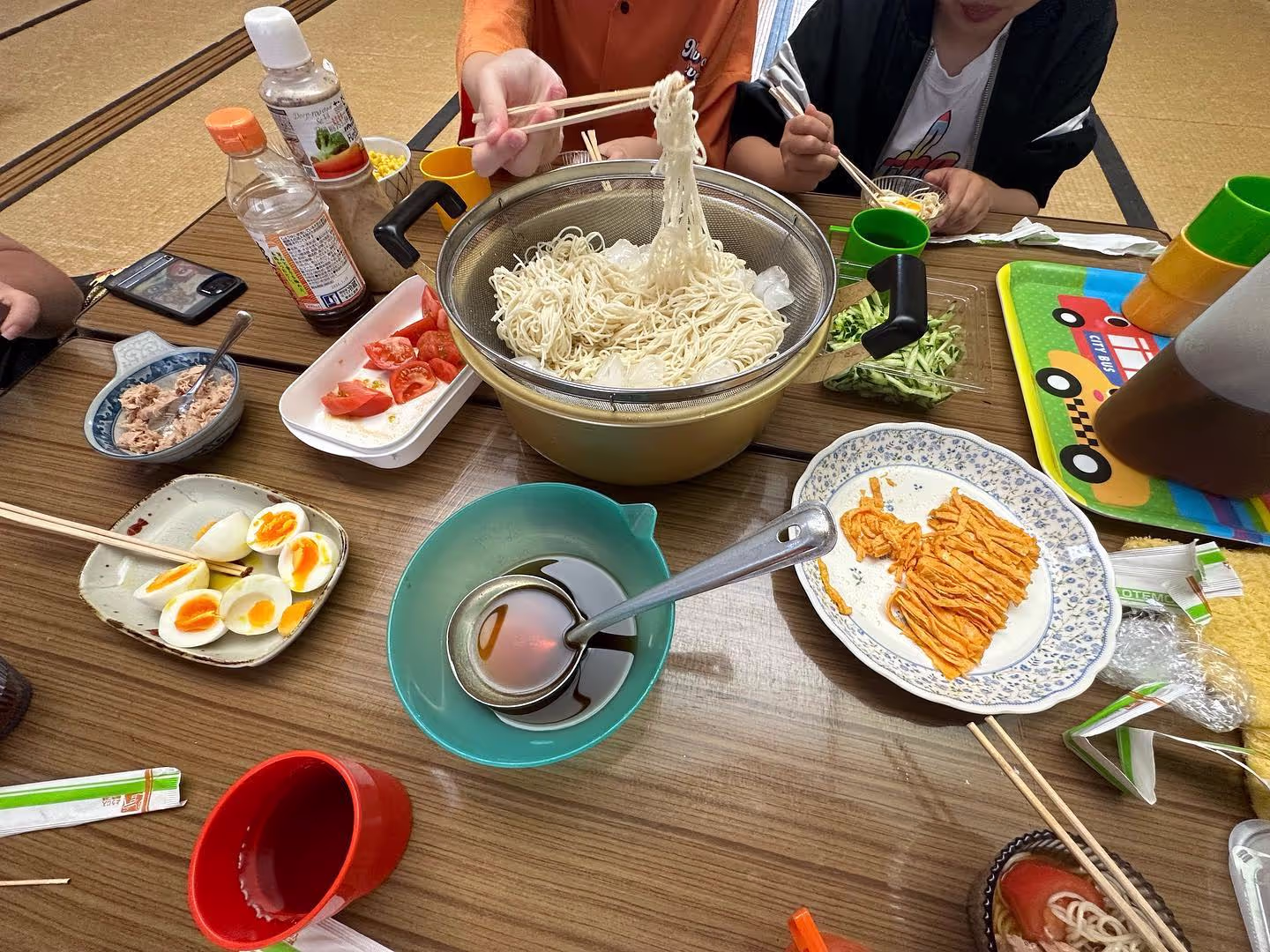 それぞれで担当に分かれて ・素麺を茹でる係 ・麺つゆの調合をする係 ・トッピングの盛り付けをする係 ・テーブル準備係 など、みんなで自分たちのやることに 責任を持ってクッキングしました👩🍳✨